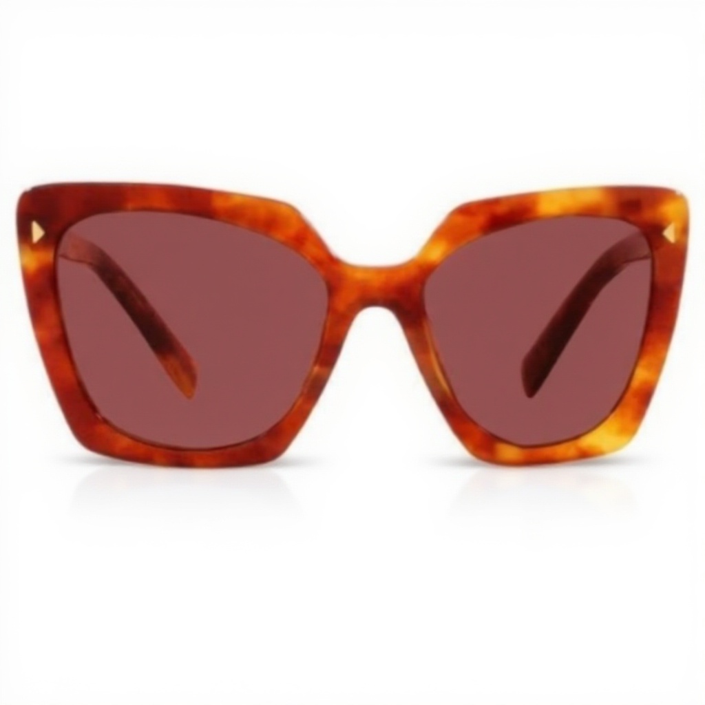 - Design esclusivo Prada con montatura in tartaruga chiaro e dettagli viola scuro